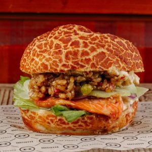 Бифштекс с соусом бургер и соусом сальса, лечо из перца и перцем халапеньо